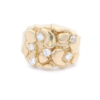 Este elegante anillo de oro presenta un diseño único e intrincado que capta la luz de manera hermosa.