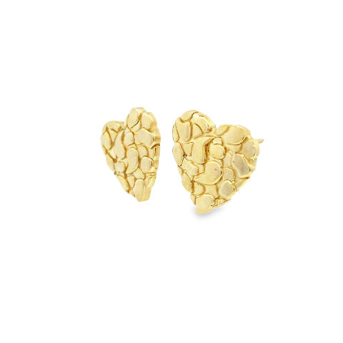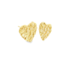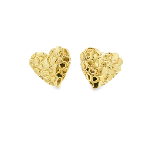 Estos exquisitos aretes en forma de corazón presentan un diseño dorado texturizado único que irradia elegancia y sofisticación.
